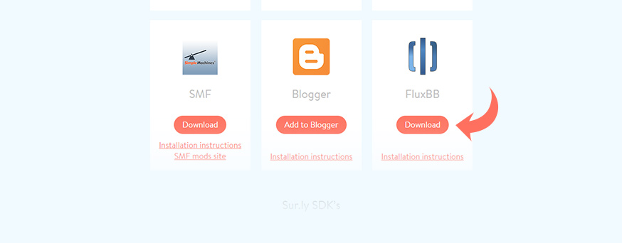Add the custom code into FluxBB files. NB: You may find another copy of the code within the Sur.ly's zip archive.