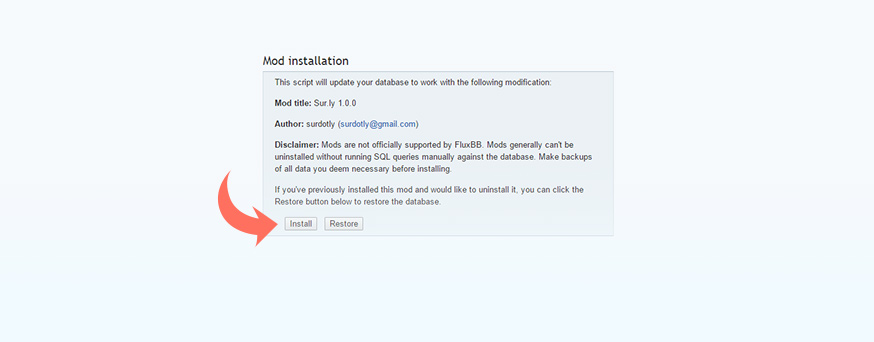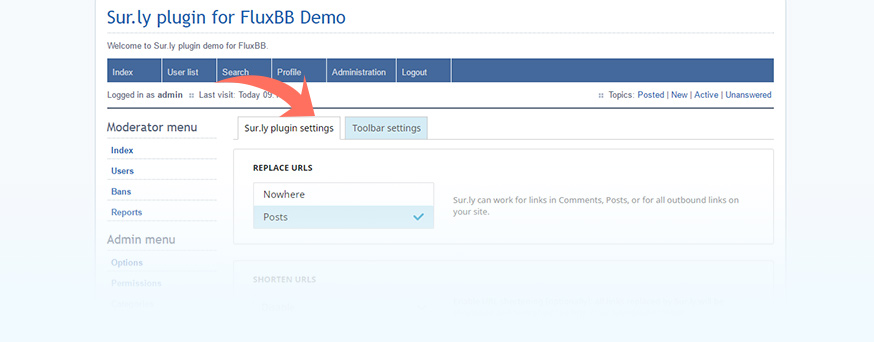 Download Sur.ly to your desktop, extract the plugin folder from zip and upload it via FTP to the root directory of your FluxBB.